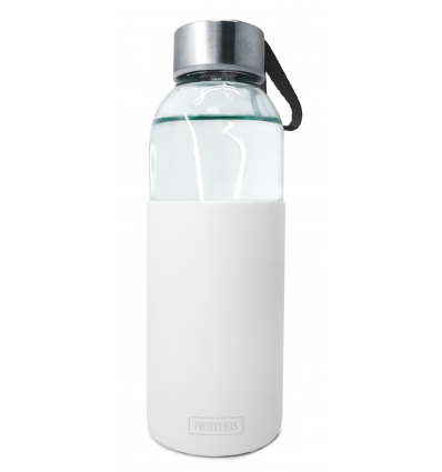 Nerthus Стъклена бутилка със силиконов протектор - 400 мл. - бяла