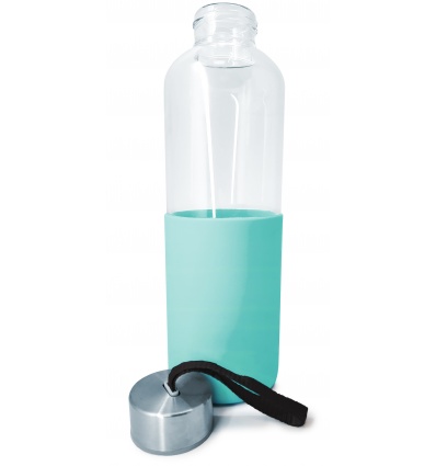 Стъклена бутилка със силиконов протектор - 600 мл. - зелена