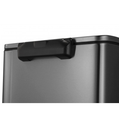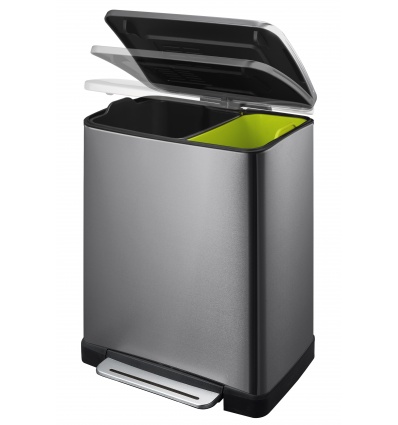 EKO EUROPE Кош за разделно събиране на отпадъци с педал “E-CUBE“ • Материал: матирана неръждаема стомана• Вътрешно отделение на капака за филтър с активен въглен, който абсорбира миризмите• Цвят: графит/инокс• Широк педал • Дръжка на задната страна за лесно преместване• Вместимост: (1 х 28) + (1 x 18) литра • Размери: 50 х 34,5 х 65 см.• 2 бр. вътрешни пластмасови кофи• Безшумно и плавно отваряне и затваряне на капака• Функция за заключване на капака в отворена позиция, за лесно почистване или смяна на торбата• Фиксатори за найлонов чувал / торбаПроизводител: EKO EUROPE / Холандия