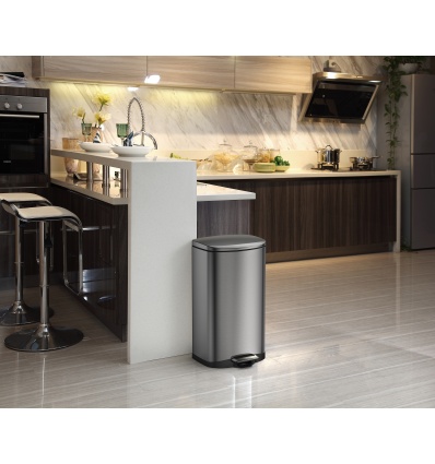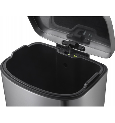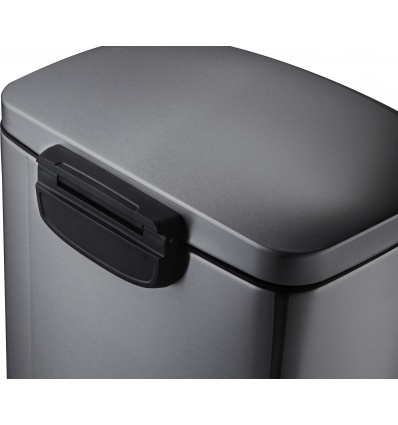 EKO EUROPE Кош за отпадъци с педал “DELLA“ • Материал: матирана неръждаема стомана• Цвят: графит / инокс• Вместимост: 50 литра • Размери: 41,6 х 37,6 х 69,2 см.• Вътрешна пластмасова кофа• Bi-force амортисьорна система (осигурява плавно затваряне)• Покритие срещу пръстови отпечатъци• Безшумно и плавно отваряне и затваряне на капака• Функция за заключване на капака в отворена позиция, за лесно почистване или смяна на торбата• Фиксатор за найлонов чувал / торбаПроизводител: EKO EUROPE / Холандия