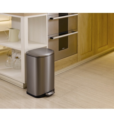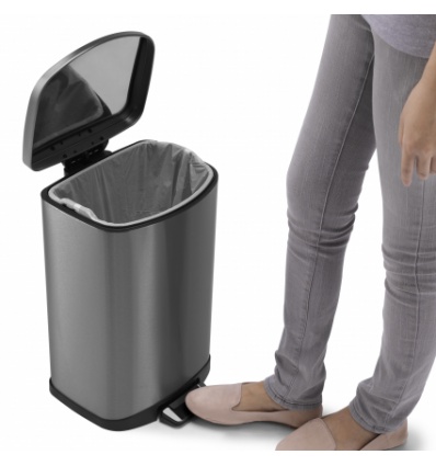 EKO EUROPE Кош за отпадъци с педал “DELLA“ • Материал: матирана неръждаема стомана• Цвят: графит / инокс• Вместимост: 35 литра • Размери: 35,6 х 33,6 х 63,8 см.• Вътрешна пластмасова кофа• Bi-force амортисьорна система (осигурява плавно затваряне)• Покритие срещу пръстови отпечатъци• Безшумно и плавно отваряне и затваряне на капака• Функция за заключване на капака в отворена позиция, за лесно почистване или смяна на торбата• Фиксатор за найлонов чувал / торбаПроизводител: EKO EUROPE / Холандия