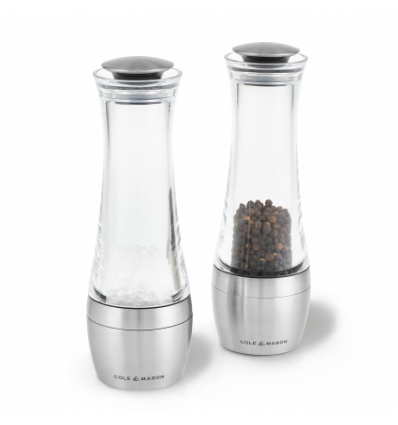Класическият дизайн на мелничката от акрил добавя изтънченост към всяка маса, като същевременно остава ежедневен кухненски аксесоар. Регулирайте степента на меленето от фино до едро чрез затягане или разхлабване на топчето на капака. Мелничките AMESBURY разполагат с механизъм от закалена въглеродна стомана (за мелничките за пипер) и усъвършенстван керамичен механизъм (за мелничките за сол). Механизмът Cole & Mason Precision не смачква зърната черен пипер, а ги стрива, за да освободи максималното количество аромати при всяко завъртане.