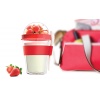 Тази удобна чаша /контейнер за кисело мляко YO 2 GO е с капацитет от 360 милилитра. С нея удобно ще носите любимото си кисело мляко и ще имате здравословна закуска по време на почивка в училище или на работа. Чашата е изработена от висококачествена пластмаса, а силиконовата лента около чашата осигурява добро сцепление, така че  да не се изплъзне от ръката ви. Комплектът включва и лъжица. Благодарение на двукамерната система Вашето мюсли, ядки или плодове се транспортират отделно от киселото мляко в  капака. Така ще можете да ги смесите с киселото мляко когато Вие решите.Чашата е херметична и удобна за използване.