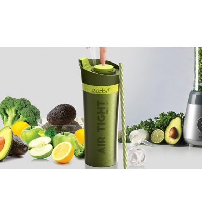 Asobu® Fresh N Go! - Двустенна термо чаша с вградена помпа за вакуум - така запазвате в перфектно състояние любимото си смути, фреш и шейк. Окислението е естествен процес, случва се когато плодовете и зеленчуците са изложени на кислород. При този процес полезните хранителни вещества и ценните ензими започват да намаляват, а също така се губи свежият естествен вид и вкус на любимите Ви плодове и зеленчуци. Какво е решението? Как да предотвратим окислението и как да запазим така ценните за здравето полезни вещества в любимите смутита, прясно изцедени сокове и плодови шейкове? Иновативният FRESH N GO от ASOBU е отговорът! Този уникален продукт е с патентован капак, който премахва въздуха и създава 100% херметична чаша. Така, без окисление, Вие ще имате свежа, вкусна и богата на хранителни вещества напитка. А двойните стени Ви гарантират, че напитката ще остане хладна дълго време. Насладете се на най-доброто от природата, когато искате и където искате, с FRESH N GO!!!