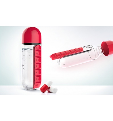Изработена от тритан и с вграден органайзер за хапчета, така че във всеки един момент имате под ръка необходимите ви хапчета, вода и чаша.