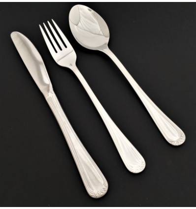 HERDMAR Комплект прибори за хранене “ONDINA“ - за 12 човека от 75 части • Изработени от неръждаема стомана 18/10 • Подходящи за почистване в съдомиялна машина. Комплектът включва: • Нож за хранене: 12 бр. • Вилица за хранене: 12 бр. • Лъжица за хранене: 12 бр. • Нож за предястия и десерти: 12 бр• Вилица за предястия и десерти: 12 бр • Лъжичка за чай: 12 бр. • Вилица за месо: 1 бр. • Лъжица за сервиране: 1 бр. • Черпак за супа: 1 бр.Производител: HERDMAR / Португалия