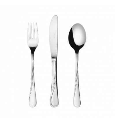 HERDMAR Комплект прибори за хранене “KARINA“ за 12 човека от 51 части. • Изработени от неръждаема стомана 18/10• Подходящи за почистване в съдомиялна машина. • Елемент от дръжката е позлатен с 24 каратово злато (със сертификат ) Комплектът включва: • Нож за хранене: 12 бр. • Вилица за хранене: 12 бр. • Лъжица за хранене: 12 бр. • Лъжичка за чай: 12 бр. • Вилица за месо: 1 бр. • Лъжица за сервиране: 1 бр. • Черпак за супа: 1 бр.Производител: HERDMAR / Португалия