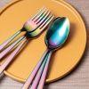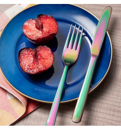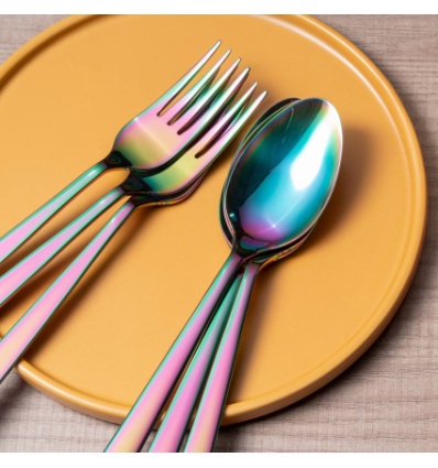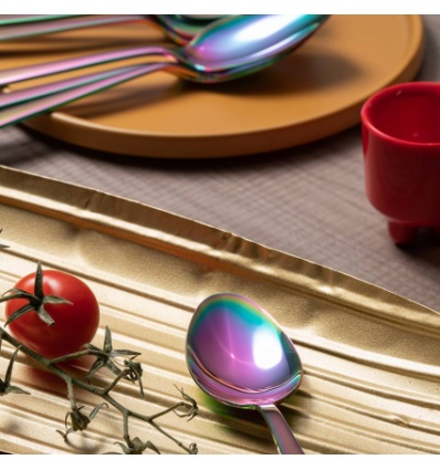 HERDMAR Комплект прибори за хранене "OSLO" за 6 човека от 36 части. • Изработени от неръждаема стомана 18/10• PVD покритие - многоцветно, преливащо • Подходящи за почистване в съдомиялна машина. Комплектът включва: • Нож за хранене: 6 бр. • Вилица за хранене: 6 бр. • Лъжица за хранене: 6 бр. • Десертна лъжичка: 6 бр.• Десертни ножа: 6 бр • Десертни вилици: 6 бр ПРОИЗВОДИТЕЛ: HERDMAR / Португалия