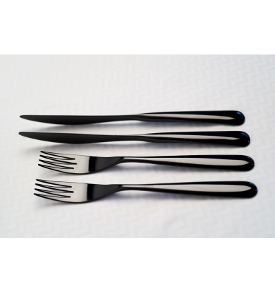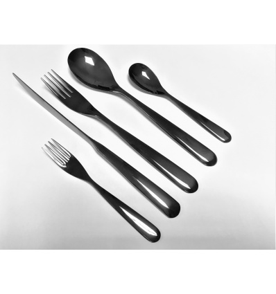 HERDMAR Комплект прибори за хранене “CENTURY“- 30 части - за 6 човека - с PVD покритие черно/ гланц• Изработен от неръждаема стомана 18/10 • PVD покритиеКомплектът включва: • Нож за хранене: 6 бр. • Вилица за хранене: 6 бр. • Лъжица за хранене: 6 бр. • Десертна лъжичка: 6 бр. • Десертна виличка: 6 бр ПРОИЗВОДИТЕЛ: HERDMAR / Португалия