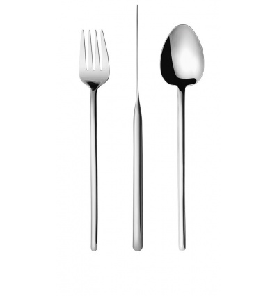 HERDMAR Комплект прибори за хранене “STICK“ - за 12 човека от 75 части • Изработени от неръждаема стомана 18/10 • Подходящи за почистване в съдомиялна машина. Комплектът включва: • Нож за хранене: 12 бр. • Вилица за хранене: 12 бр. • Лъжица за хранене: 12 бр. • Нож за предястия и десерти: 12 бр• Вилица за предястия и десерти: 12 бр • Лъжичка за чай: 12 бр. • Вилица за месо: 1 бр. • Лъжица за сервиране: 1 бр. • Черпак за супа: 1 бр.Производител: HERDMAR / Португалия