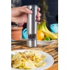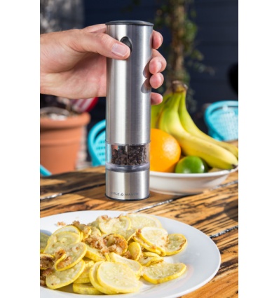 С вградената LED светлина и удобната работа с една ръка, само с едно натискане на бутона, мелите сол и пипер без усилие. Идеални за бързо използване при готвене или на масата, за да впечатли гостите. Регулирайте настройката за мелене от фино до грубо, като завъртите копчето в основата на мелницата. Съчетани в комплект, тези мелнички са идеални за подарък. За най-добра работа на мелничките Ви препоръчваме да използвате висококачествени черен пипер и морска сол. И двете мелнички са с керамичен механизъм, което ги прави взаимнозаменяеми за сол и пипер.