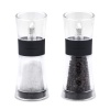 Елегантна и стилна серия от модерни мелници за сол и пипер, които имат механизъм в горната част, гарантиращ, че кухненските плотове, шкафове и маси за хранене остават чисти. Лесни за използване: просто вземете, обърнете и завъртете, за да започнете да смилате. Копчето, което покрива механизма, е проектирано да бъде изключително дълго, така че лесно да достигнете до него, за да регулирате смилането от фино до едро. Прозрачното акрилно тяло гарантира, че винаги ще имате видимост за количеството сол или пипер във Вашите мелници. Широката основа прави зареждането лесно и безпрепятствено. И двете мелници идват пълни с виетнамски черен пипер на зърна и белгийска морска сол, така че можете да започнете да ги използвате от самото начало.