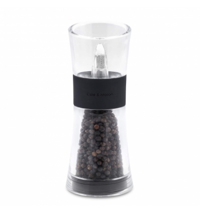 • Височина: 15,4 см.• Материал: акрил, керамика• Цвят: черен• Механизъм на мелницата за сол: керамичен• Механизъм на мелницата за черен пипер: керамичен• Да не се мокри с вода!• Не използвайте мелничките за различни от каменна сол и черен пипер продукти!!! Производител: Cole&Mason / Англия