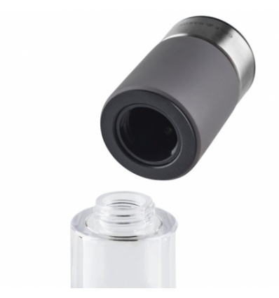 Изработена прозрачен акрил и технически камък, тази мелница е семпла, но заемаща централно място във всеки кът за хранене. Прозрачният контейнер контрастира добре с гладкия светлосив технически камък. Камъкът е завършен със слой от прозрачен лак, за да се защити неговото покритие и да се предотвратят следите от ежедневна употреба. В основата е поставен пластмасов пръстен, който предпазва работните повърхности от контакти с камъка, за да се избегнат надраскване или повреда.