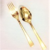 • Приборите за хранене със златно покритие имат покритие с дебелина от 3 или 4 микрона 24 карата злато• Всички прибори със златно покритие е препоръчително да бъдат почиствани в съдомиялна машина и НИКОГА с абразивни или агресивни препарати, както и груби и драскащи гъби.• Покритието е биосъвместимо, тествано и одобрено за безопасност при контакт с храна• Пазете приборите със златно покритие и ги поддържайте с внимание и грижа, за да запазите добрия им външен вид.• Плътността на цвета на златното покритие може леко да се промени, според начина на използване и от околната среда, където се съхраняват.• Приборите трябва винаги да бъдат добре почистени и подсушени, за да се предотврати образуването на петна.HERDMAR не гарантира замяна на позлатени прибори - 24 карата злато, освен ако не се установи дефект, причинен при производство или от суровина.Указания за почистване и съхранение: