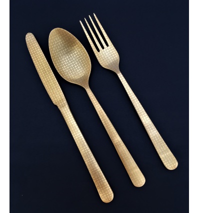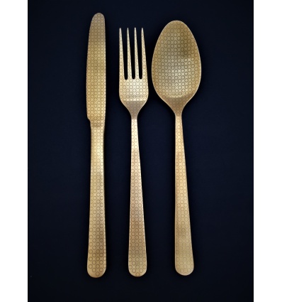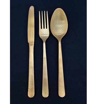• Приборите за хранене със златно покритие имат покритие с дебелина от 3 или 4 микрона 24 карата злато• Всички прибори със златно покритие е препоръчително да бъдат почиствани в съдомиялна машина и НИКОГА с абразивни или агресивни препарати, както и груби и драскащи гъби.• Покритието е биосъвместимо, тествано и одобрено за безопасност при контакт с храна• Пазете приборите със златно покритие и ги поддържайте с внимание и грижа, за да запазите добрия им външен вид.• Плътността на цвета на златното покритие може леко да се промени, според начина на използване и от околната среда, където се съхраняват.• Приборите трябва винаги да бъдат добре почистени и подсушени, за да се предотврати образуването на петна.HERDMAR не гарантира замяна на позлатени прибори - 24 карата злато, освен ако не се установи дефект, причинен при производство или от суровина.Указания за почистване и съхранение: