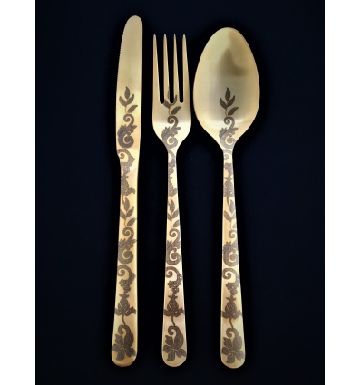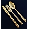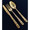 • Приборите за хранене със златно покритие имат покритие с дебелина от 3 или 4 микрона 24 карата злато• Всички прибори със златно покритие е препоръчително да бъдат почиствани в съдомиялна машина и НИКОГА с абразивни или агресивни препарати, както и груби и драскащи гъби.• Покритието е биосъвместимо, тествано и одобрено за безопасност при контакт с храна• Пазете приборите със златно покритие и ги поддържайте с внимание и грижа, за да запазите добрия им външен вид.• Плътността на цвета на златното покритие може леко да се промени, според начина на използване и от околната среда, където се съхраняват.• Приборите трябва винаги да бъдат добре почистени и подсушени, за да се предотврати образуването на петна.HERDMAR не гарантира замяна на позлатени прибори - 24 карата злато, освен ако не се установи дефект, причинен при производство или от суровина.Указания за почистване и съхранение: