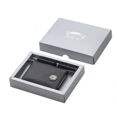 Авто сет, включващ химикал и картодържател / калъф за документи от естествена кожа с лого. Размер на картодържател / калъф за документи: 8*10 см