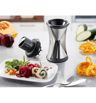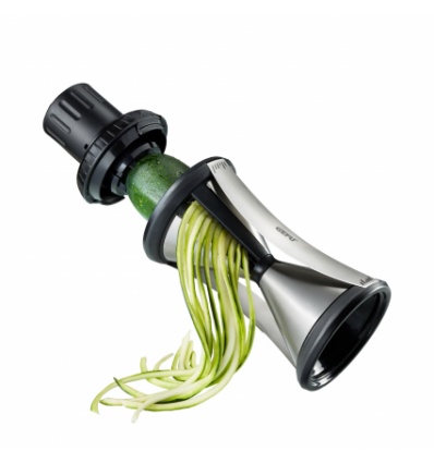 GEFU Резачка за плодове и зеленчуци “SPIRELLI“ XL - с държач-предпазител• Материал: висококачествена неръждаема стомана / пластмаса• Острие от японска стомана • Размери: Ø 9 см х 24 см • За зеленчуци и плодове с размер до Ø 6,5 см• Две различни ширини на спиралите: 4,5 мм и 8 мм• Държач предпазител с три задържащи игли • Подходящо за краставици, тиквички, моркови, картофи, цвекло и др• Четка за почистване• Можете да миете в съдомиялна машинаПроизводител: GEFU / Германия