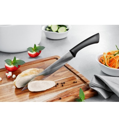 GEFU Карвинг нож SENSO • Материал: висококачествена стомана / пластмаса• Ултра лек и изключително остър• Дължина на острието: 20,5 см • Размер на ножа: 33,7 х 3,4 х 2,4 см (ДхШхВ)• Можете да миете в съдомиялна машина• Ергономична  дръжка с гумирана част за добро сцепление и безопасна работаПроизводител: GEFU / Германия