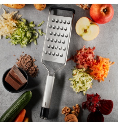 GEFU Ренде за едро настъргване - серия "PRIMELINE" • Материал: висококачествена неръждаема стомана / ABS • Размери: 34,9 х 8,5 х 1,8 см • Лазерно заточени остриета• Подходящо за настъргване на зеленчуци, продове, сирена, ядки, шоколад и др.• Можете да миете в съдомиялна машина• Ергономична дръжкаПроизводител: GEFU / Германия
