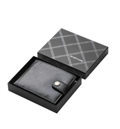 Мъжки портфейл от естествена кожа, колекция BUTTON, с две отделения за банкноти, едно средно отделение за карти и лични документи. Монетник двойно тапициран с кожа против износване от монетите. Закопчаване от лицевата страна на портфейла. Размери: 12 * 9,5 см