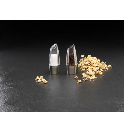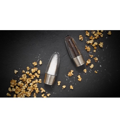 • Височина: 16 см.• Материал: акрил, стомана, керамика• Цвят: инокс• Механизъм: керамичен (за мелничката за сол) и закалена въглеродна стомана (за мелничката за пипер)• Регулируеми настройки на мелене: от едро до фино• Пълни (със сол и черен пипер)• Да не се мокрят с вода!• Не използвайте мелничките за различни от сол и черен пипер продукти!!! Производител: Cole&Mason / Англия