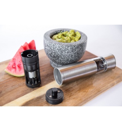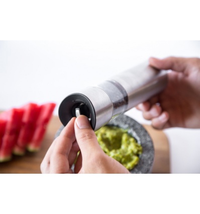 Мелничката е чувствителна на движение – достатъчно е да я обърнете надолу, за да започне автоматично да мели, а когато я върнете в първоначалното ѝ положение, автоматично спира. Всичко това Ви позволява да използвате мелничката само с една ръка. Прецизният керамичен механизъм и лесното регулиране на едрината на смилане ще Ви осигурят перфектно подправени ястия при всяко готвене.