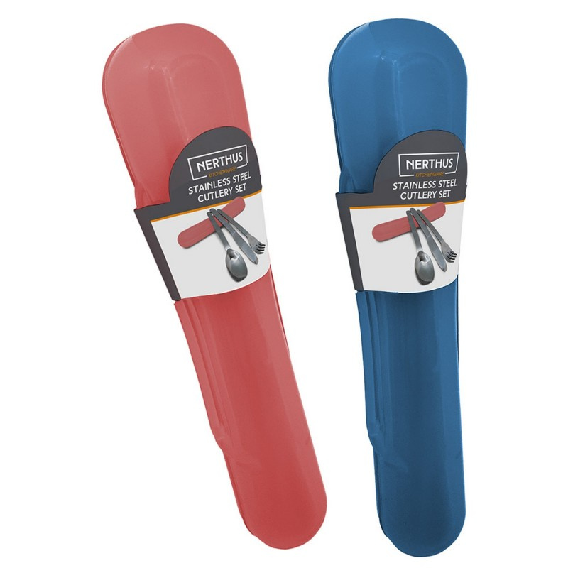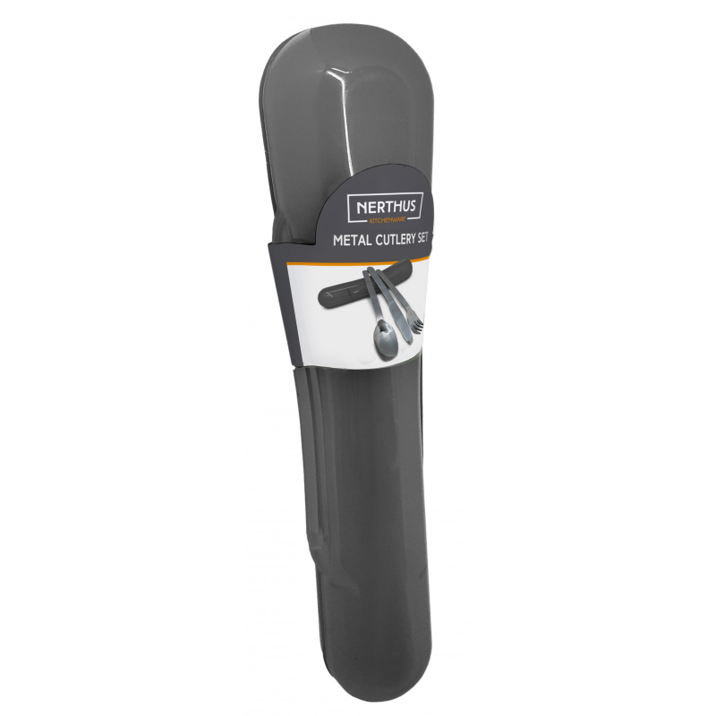Nerthus Комплект от 3 бр. стоманени прибори за хранене в кутия