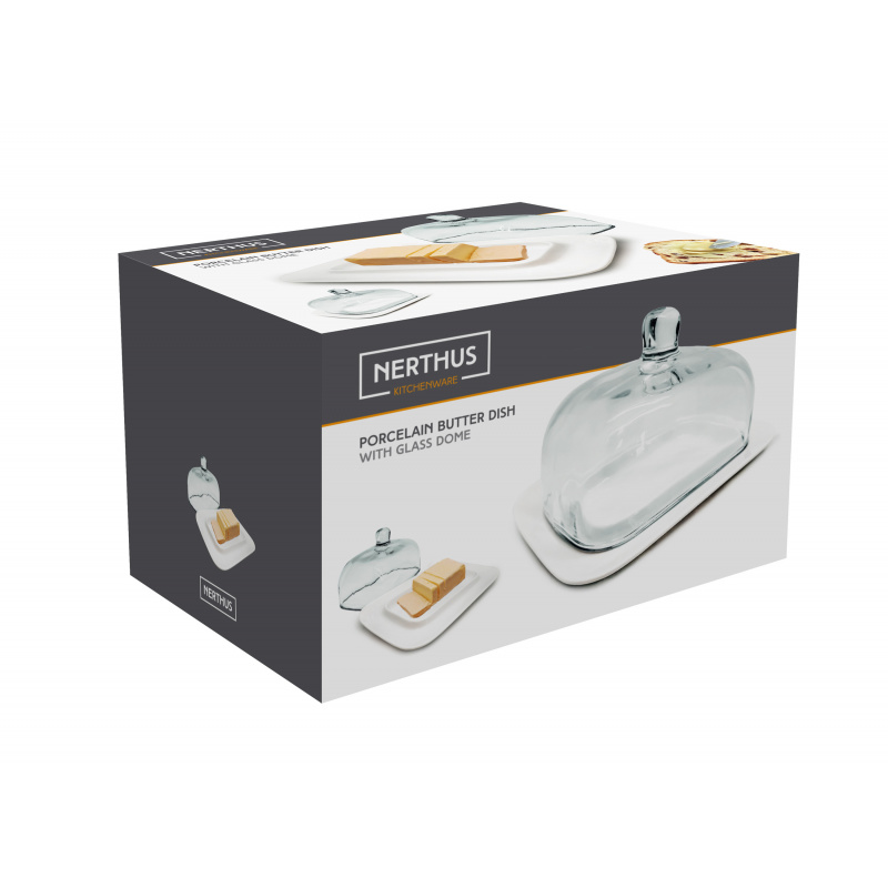 Настанете маслото удобно в хладилника с класически съд за масло с порцеланова основа и стъклен капак!