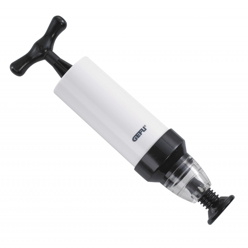 Практичният вакуумен комплект на GEFU е абсолютно необходим когато готвите по метода sous-vide. Готвенето във вакуум е френска технология известна още под името „су вид”, идващо от френското sous-vide, което означава „под вакуум”. При този метод на готвене, храната е запечатана в херметически затворен плик, при което се приготвя на ниска температура за дълго време. Този вид технология на готвене се прилага в ресторанти от най-висок клас като се цели да се постигне наситен аромат, сочна конситенция и запазване на ценните хранителни вещества в продуктите. Температурата е толкова ниска, че е изключено завиране, а вакуумираният плик не позволява на естествените сокове и арамати да напускат храната. Предимстава на вакуум готвенето: • запазване на цвета, аромата и полезните вещества на хранителните продукти • по-нежна консистенция на храната, крехкост • равномерно и прецизно готвене • винаги отлични кулинарни резултати • предотвратява развитието на микроорганизми, като така готовият продукт се съхранява за по-дълго време• няма начин месото, което приготвяте, да стане сухо, су вид готвенето гарантира сочно месо дори да го оставите да се готви повече от препоръчителното • Су вид готвенето придава по-наситен вкус на храната