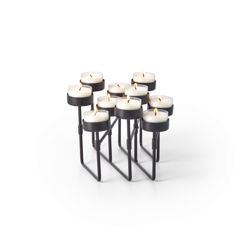PHILIPPI Свещник за 10 чаени свещи LAB • Материал:лакирано желязо, разтегаемо• Размери: 12 х 11 х 23 см (ВхШхД)• Цвят: черен• Производител: PHILIPPI / Германия