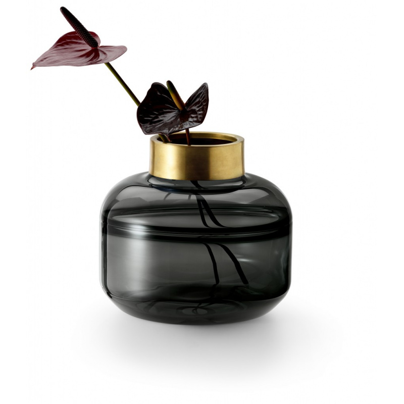 PHILIPPI Стъклена ваза “GIUGLIA“ - ниска• Материал: черно стъкло, месинг• Размер: 23 х 21 см (h)• Вазата е ръчна изработка • Производител: PHILIPPI / Германия