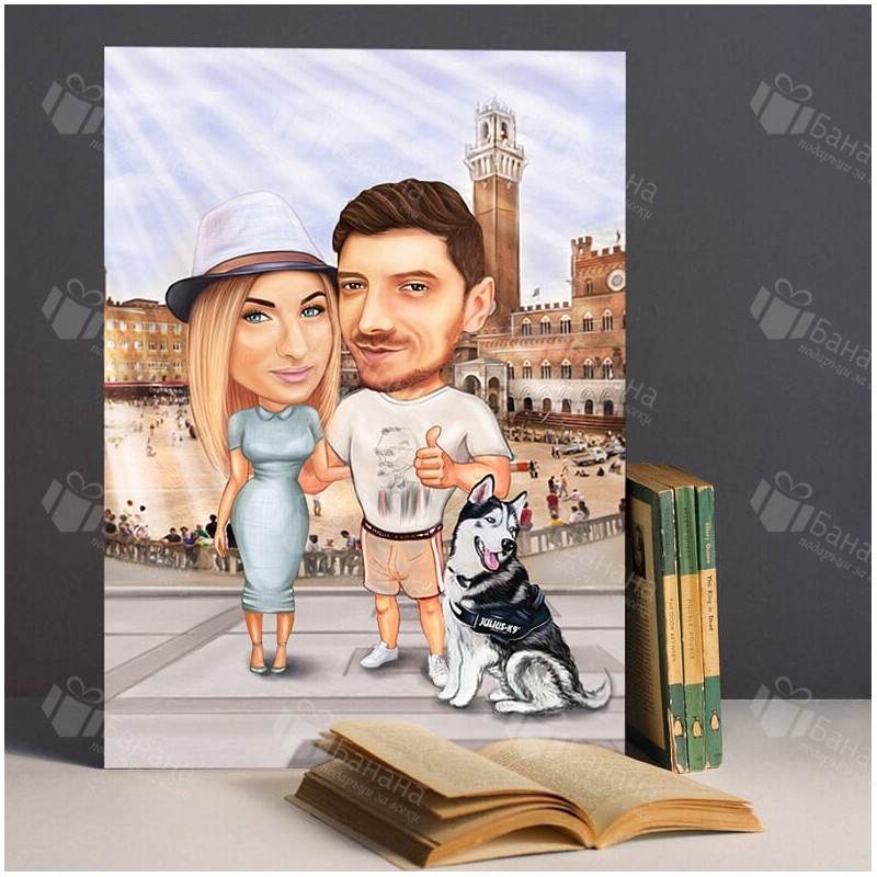 Вашата карикатура се отпечатва върху висококачествена хартия или канава/платно в избран от Вас размер.