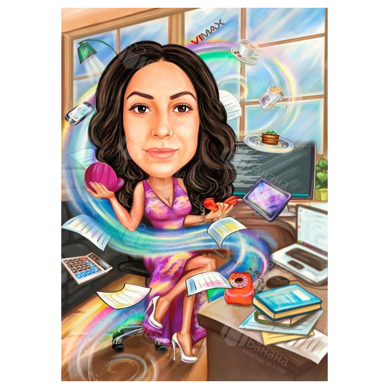 Вашата карикатура се отпечатва върху висококачествена хартия или канава/платно в избран от Вас размер.
