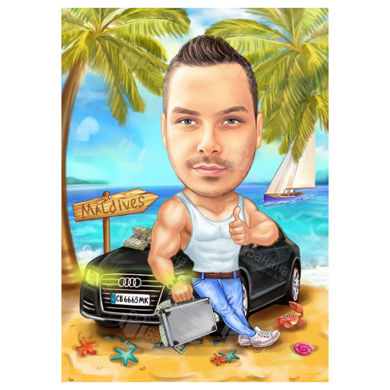 Вашата карикатура се отпечатва върху висококачествена хартия или канава/платно в избран от Вас размер.