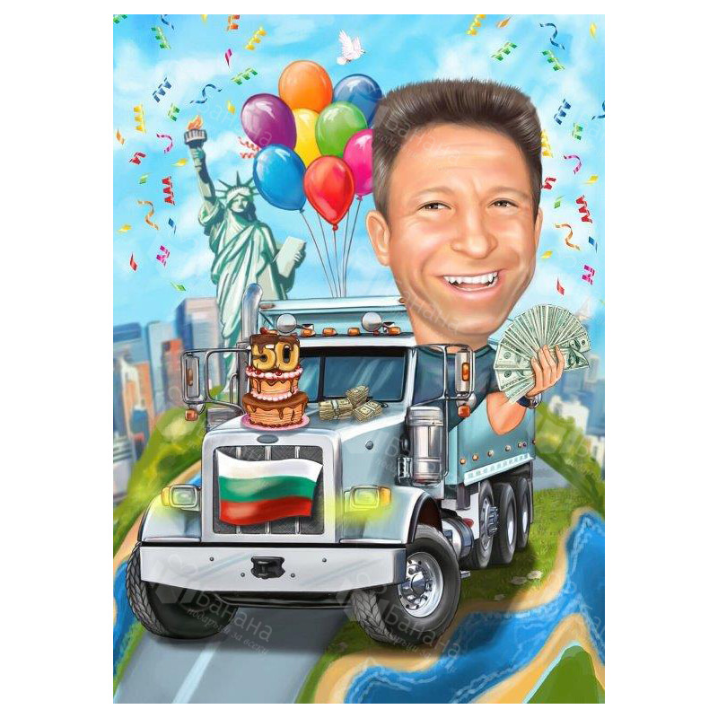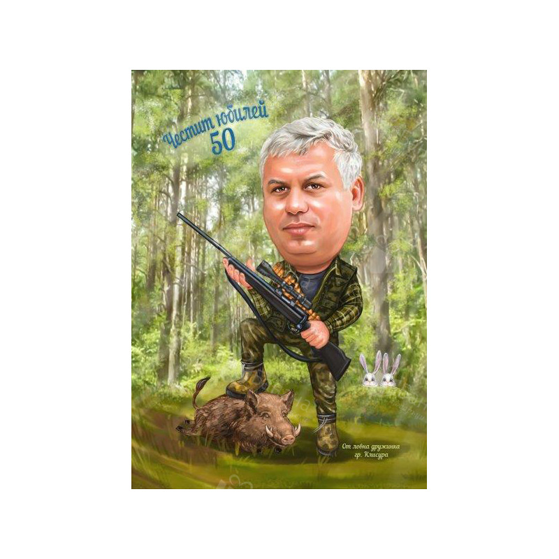 Вашата карикатура се отпечатва върху висококачествена хартия или канава/платно в избран от Вас размер.