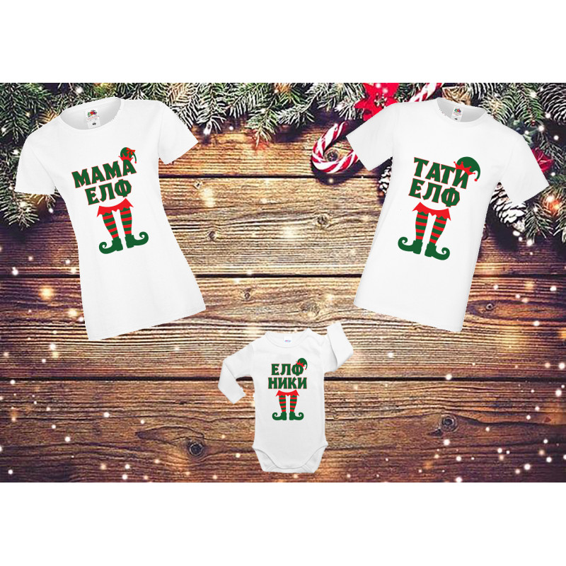 Мъжка и дамска тениска и бебешко боди с дълъг ръкав.