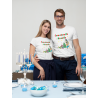 Комплект тениски за Него и Нея с коледни мотиви и персонализиран надпис.
