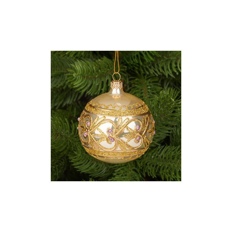 Коледна златна топка с декорация