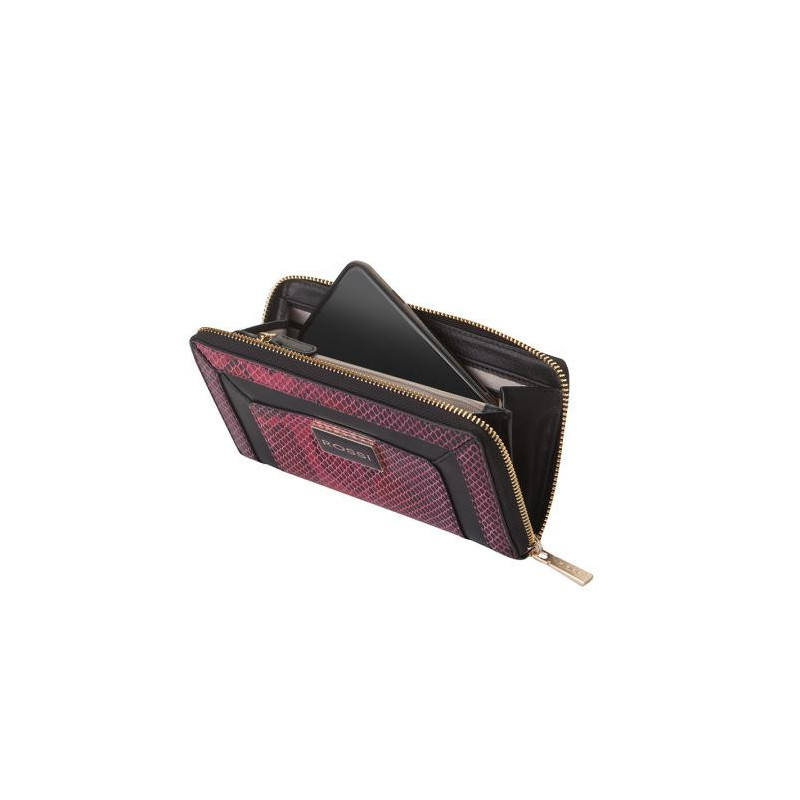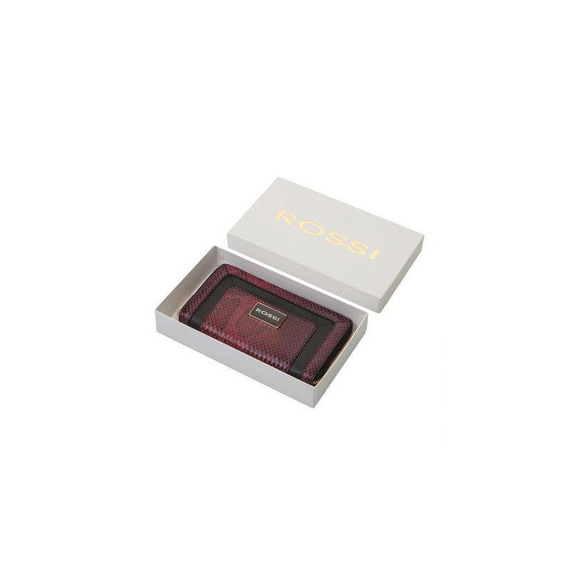 Дамско портмоне цвят Питон тъмно червено и черно - ROSSI