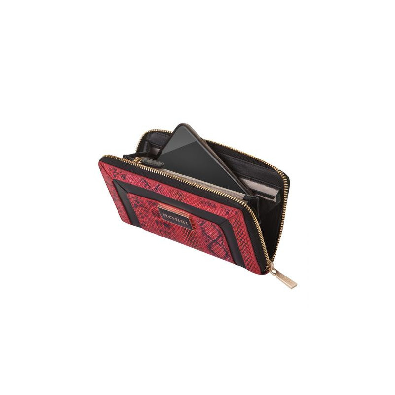 Дамско портмоне цвят Питон червено и черно - ROSSI