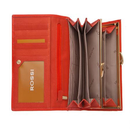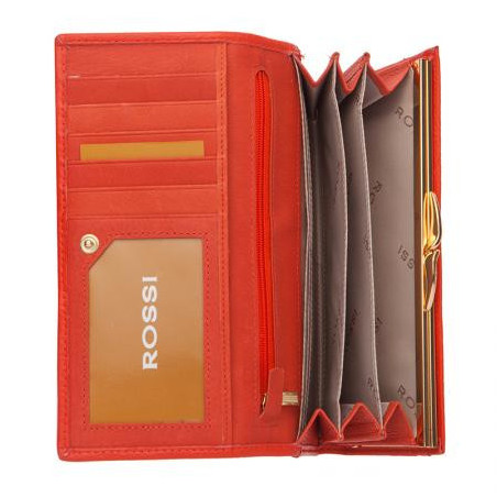 Дамско портмоне цвят корал с декоративен шев - ROSSI