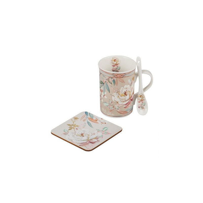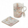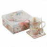 Размери: чаша: h=11 см , лъжичка: h=13 см, подложка: 10.5/10.5см, кутия: 18/16.5/8 см