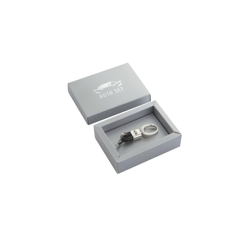 Ключодържател от метал и естествена кожа. Размери: дължина 8 см, ширина 2 см