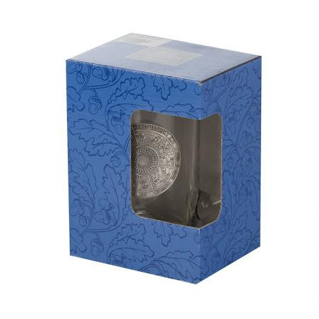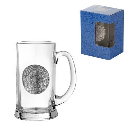 Оригинална халба за бира от стъкло с удобна дръжка. Умела метална гравюра, изработена от калай и сребро. Произведена в Австрия. Размери: Ø 8 см ,височина - 15 см , вместимост - 500 мл.