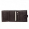 Мъжки портфейл от естествена кожа, колекция Бъфало, с две отделения за банкноти, едно странично отварящо се отделени за карти и лични документи. Монетник двойно тапициран с кожа против износване от монетите. Оделение с цип. Закопчаване от лицевата страна на портфейла. Размери: 8,5 / 10,5 / 2 см.
