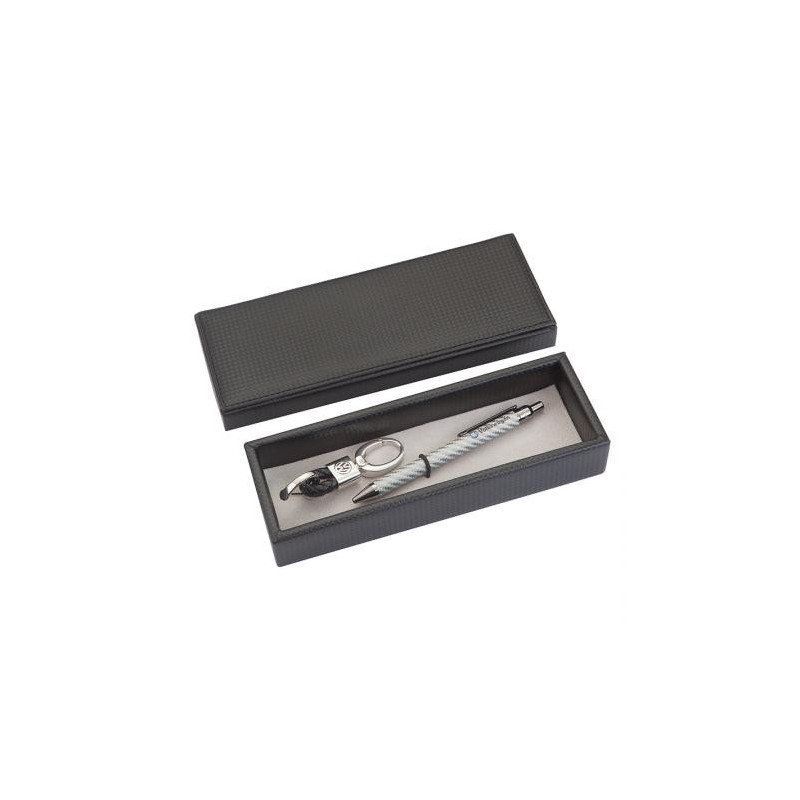 Авто сет в луксозна кутия, включващ химикал и ключодържател от естествена кожа с лого. Размери: 7 * 2.5 см