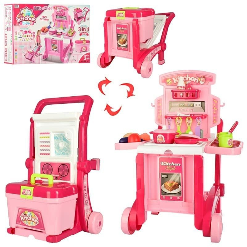 Количка кухня-куфар розова
