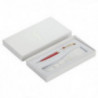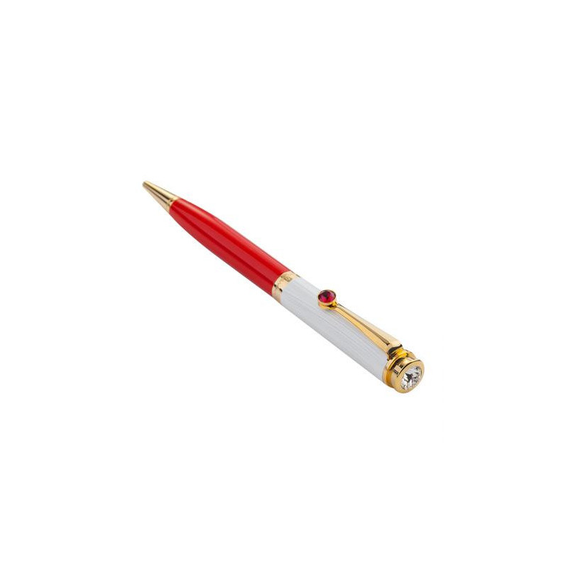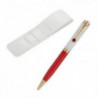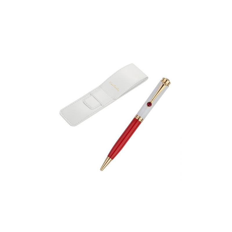 Химикал в подаръчна кутия Pierre Cardin. В комплекта се включва калъфче за химикала. Материал: метал червено - бяло покритие; Свароски кристали. Доставя се със син пълнител.